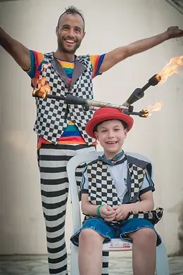 החגיגה מתחילה במופע קצר בו ילד/ת יום ההולדת עולה לבמה ומככב/ת בקטעי ג'אגלינג ואקרובטיקה!